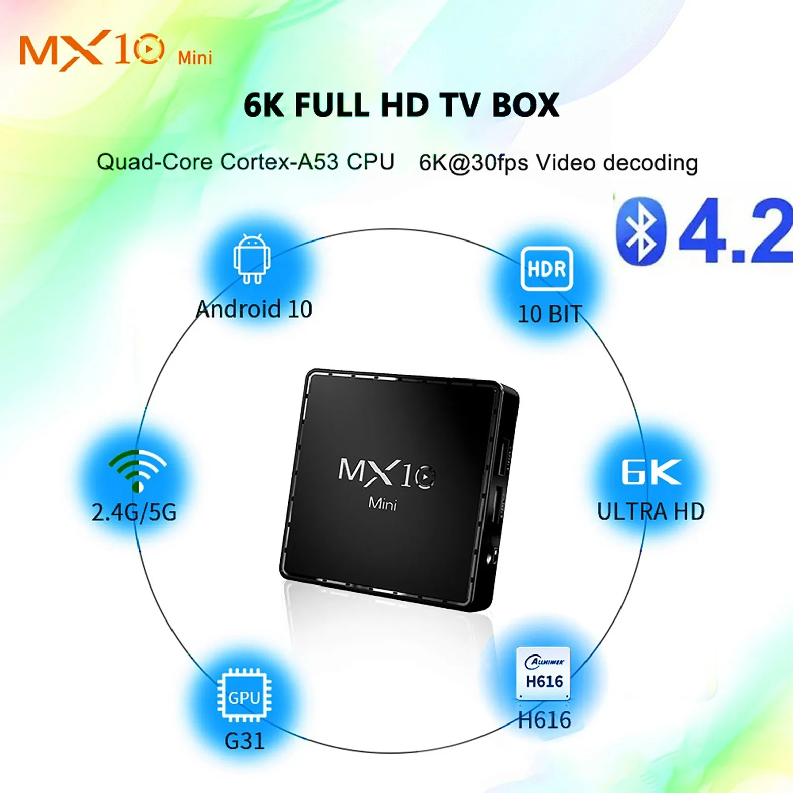 Название: MX10 Mini H616 6K ТВ-приставка Android 10 с четырехъядерным процессором 4 Гб ОЗУ 64 Гб ПЗУ WIFI смарт-приставка IPTV OTT TV приёмник для M3U 3D 2021