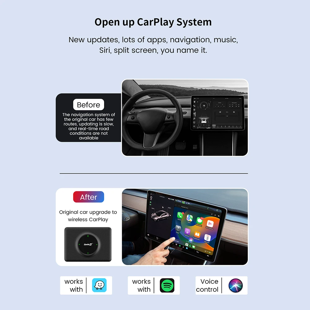 Отзывы о Беспроводная мини-приставка CarlinKit T2C Wi-Fi Bluetooth адаптер для Tesla Model 3/ X/Y/S Apple Carplay Dongle
