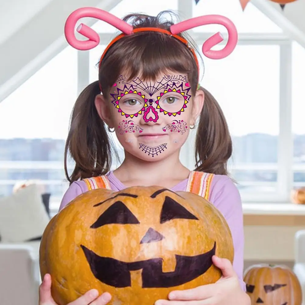 5.[Отличные вечерние принадлежности] водонепроницаемые Временные татуировки для лица сделаны для празднования Хэллоуина и Дня мертвых, что делает вас самым необычным человеком на собраниях и подходит как для подростков, так и для взрослых.
