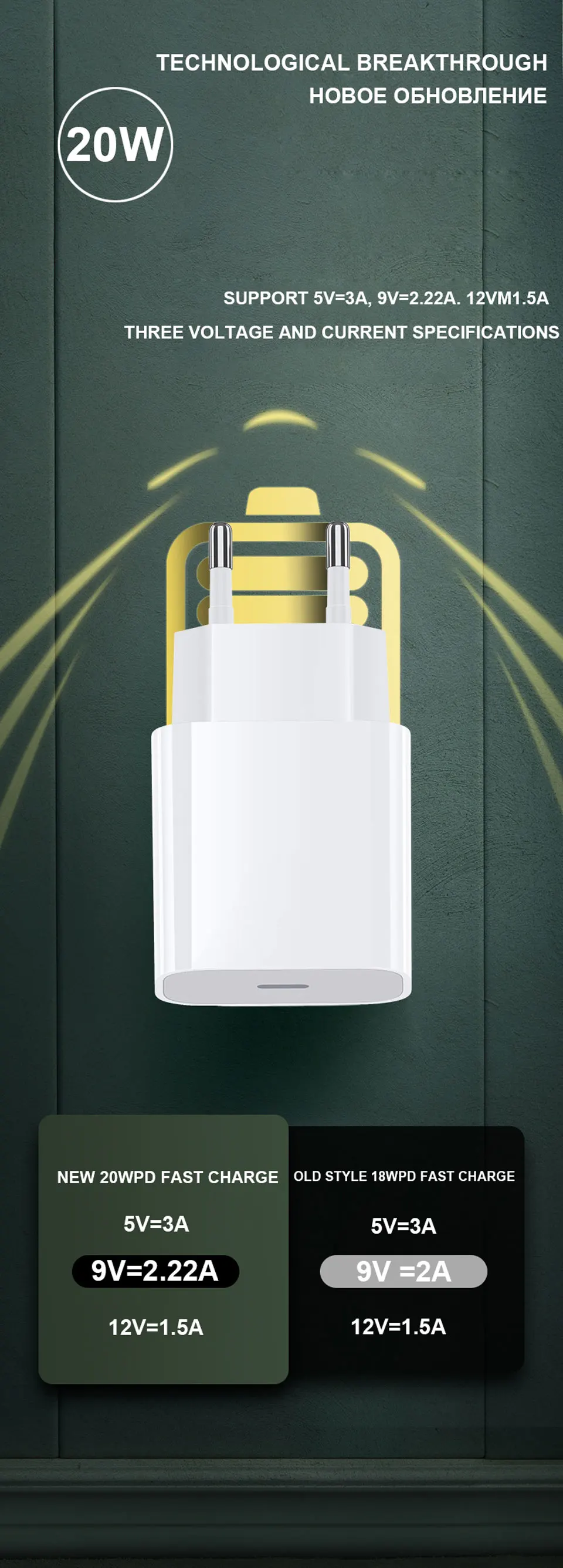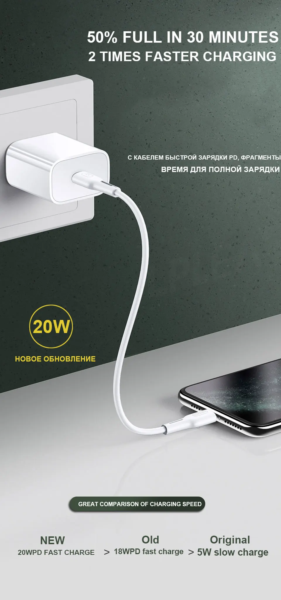 Отзывы о PD 20W For Apple Original Charger iPhone 12 11 14 13 Pro Max Mini XR X XS 8 Plus iPad Air USB Type C Fast Charging Cable - купить по