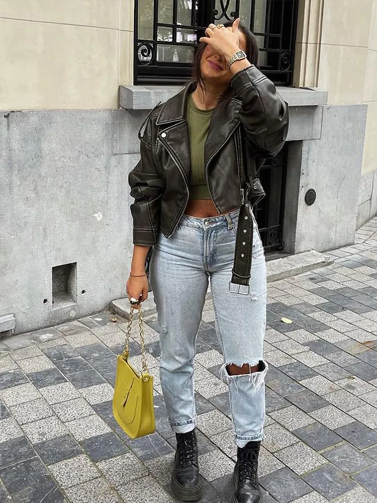 Отзывы о Куртка женская короткая кожаная с отложным воротником на осень/зиму - купить по
