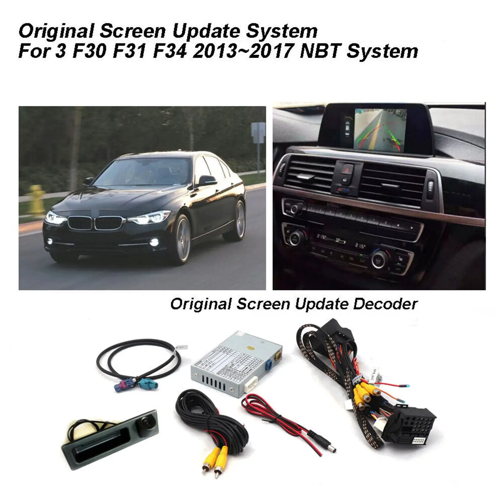 Модуль декодера, который мы предоставляем, подходит для следующих моделей: система обновления экрана для BMW 3 F30 F31 F34 2013 ~ 2017 NBT системы