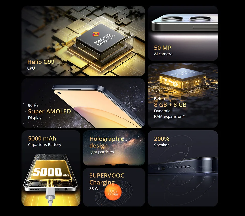 SUPERVOOC зарядка 33 Вт | 200% динамик | До 8 Гб + 8 Гб расширение динамической RAM *