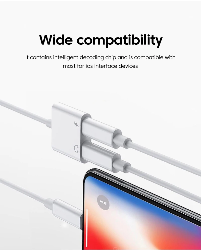 1. Двойные порты Lightning: разъем для наушников должен быть оригинальным наушником Apple. Поддержка зарядки, прослушивания музыки, разговора и проводного управления, подходит для iOS 10 или более поздней версии.