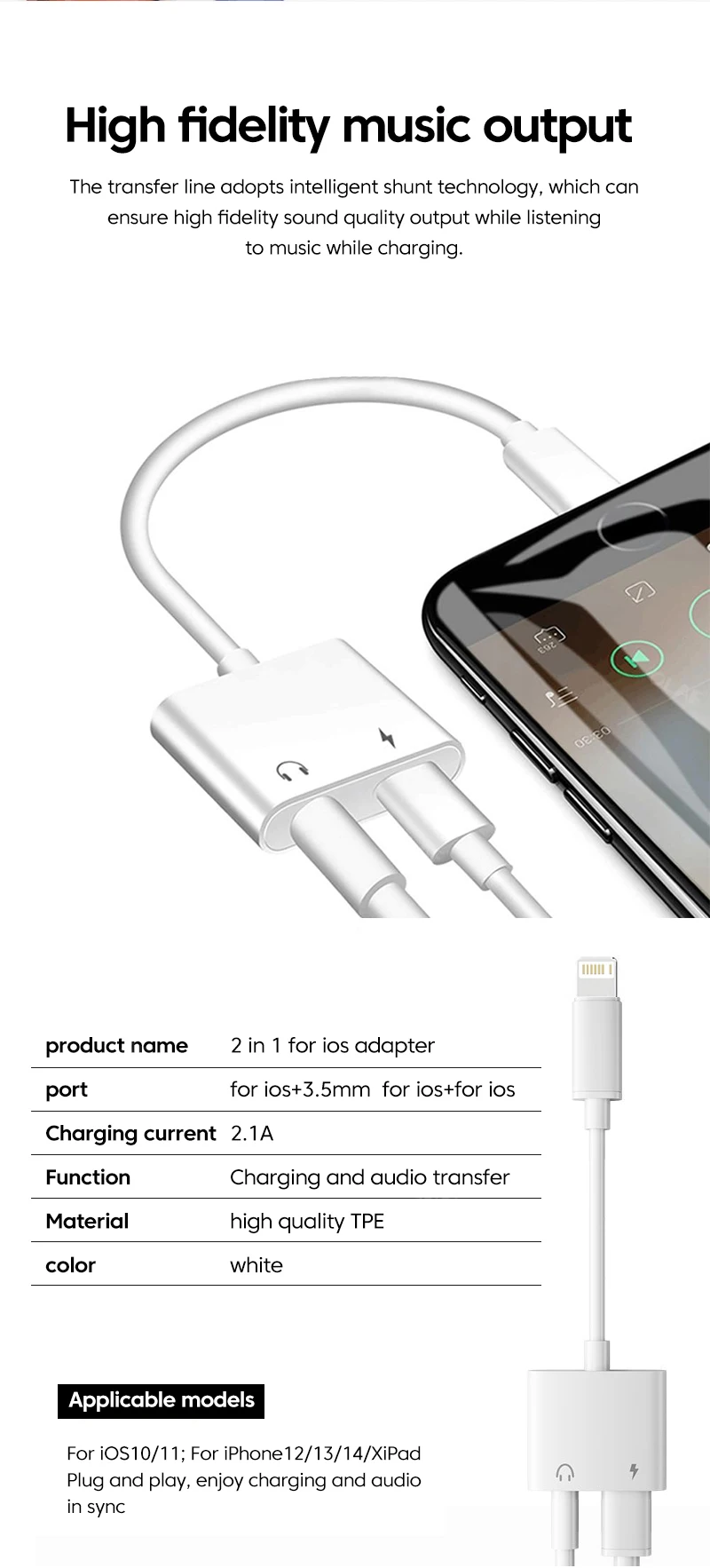 Отзывы о Аудиоадаптер 2 в 1 зарядный кабель для наушников iPhone 14 13 Pro Max XS адаптер Lightning/Джек 3 5