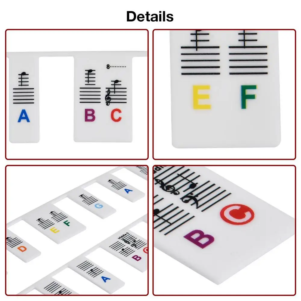 4. Полезные наклейки на клавиатуру: Когда вы начинаете понимать клавиши и ознакомьтесь с правилами октавы, вы можете удалить наклейки на клавиатуру пианино. Практичный и удобный для обучения пианино. Если вы чувствуете, что недостаточно опытны, вы повторите использование наклеек на клавиатуру.