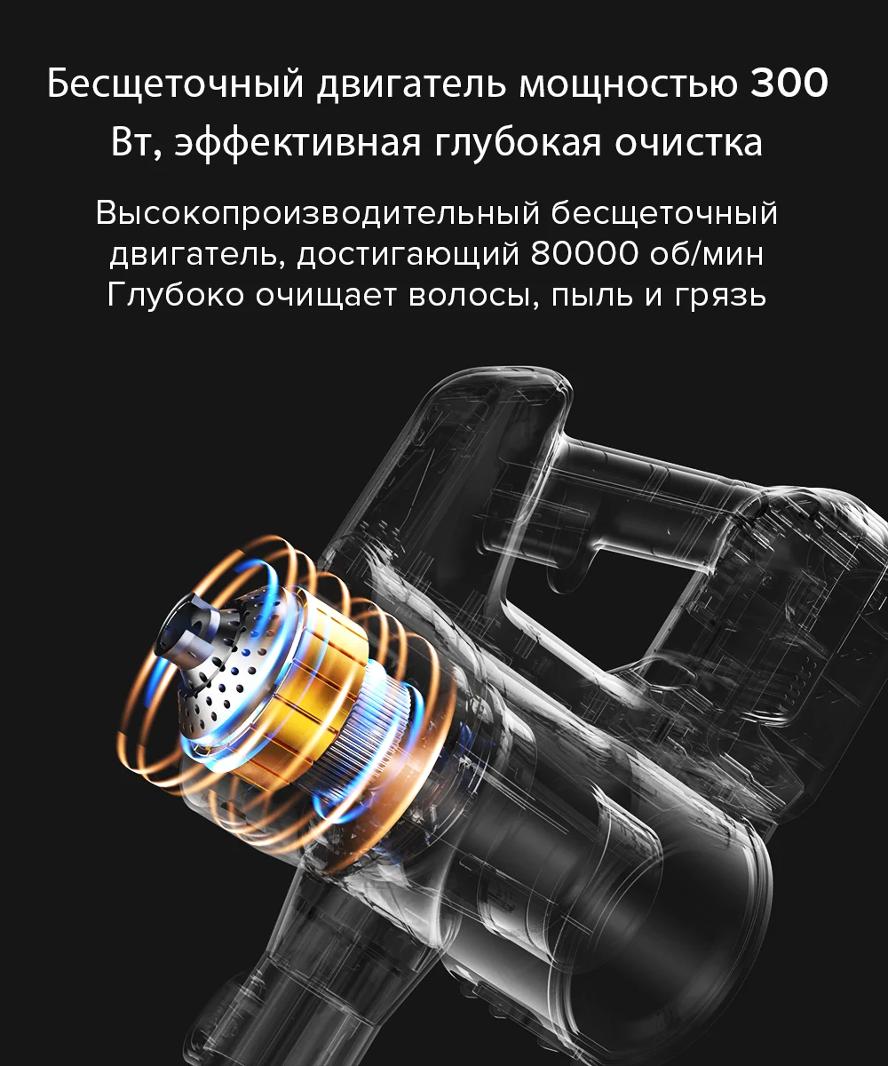 300 Вт бесщеточный двигатель, эффективная Глубокая очистка, высокая производительность бесщеточного двигателя, достигая 80000 об/мин глубоко очищает волосы, грязь и грязь