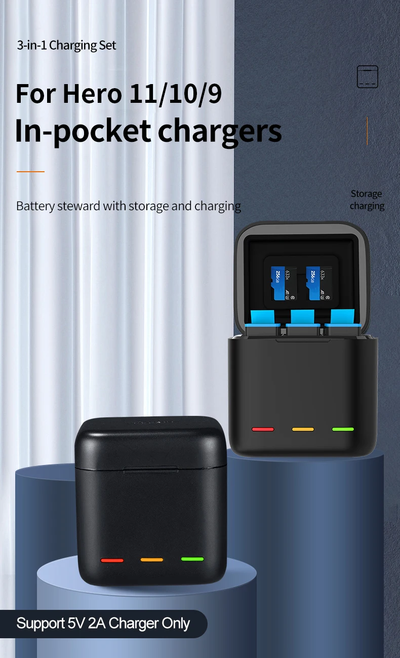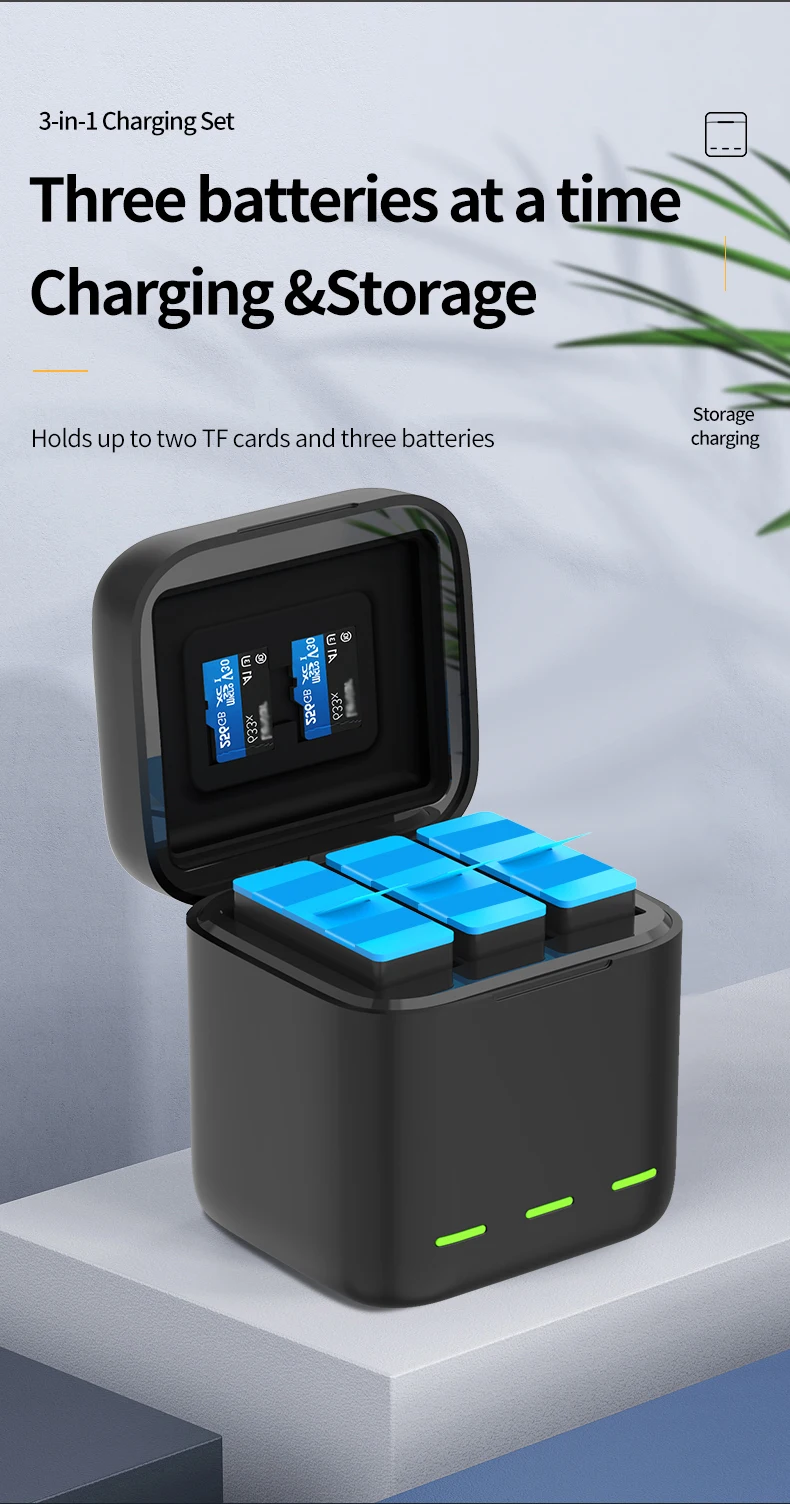 1. 3 аккумулятора в момент зарядки и хранения, вмещает до 2 tf-карт и 3 батареи.