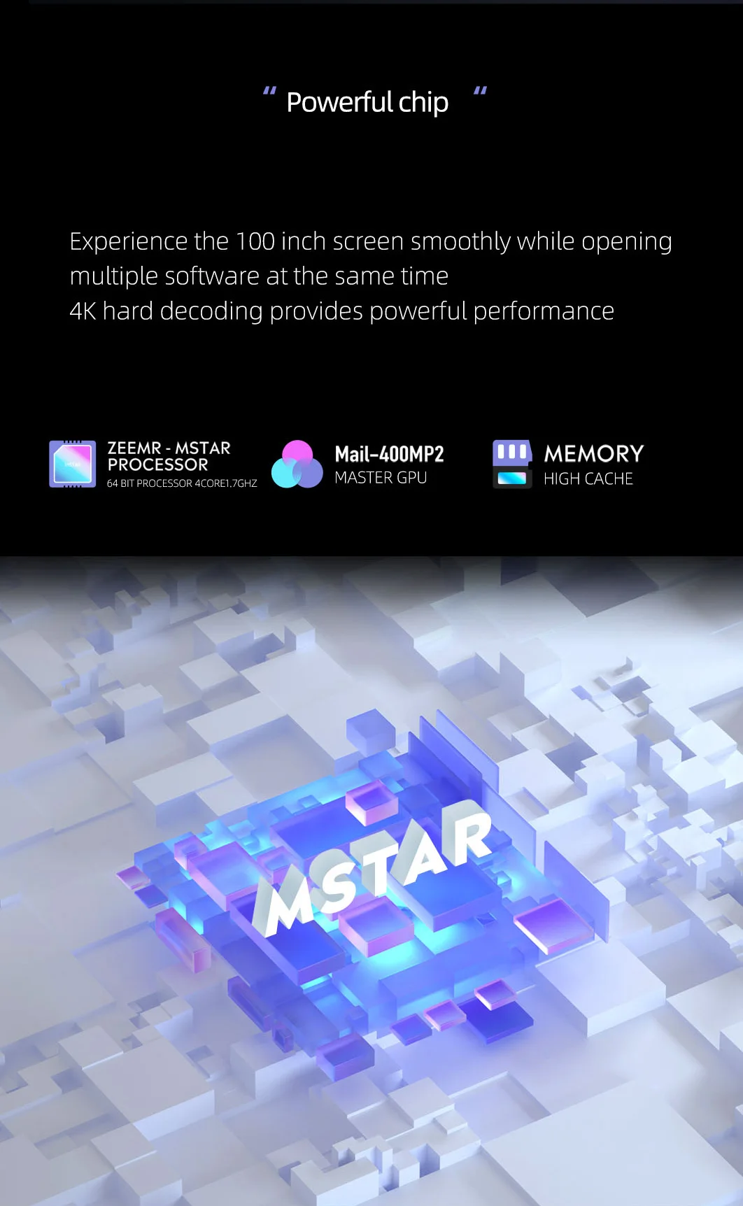 <Аудиовизуальное удовольствие на уровне кинотеатра>: Проектор ZEEMR имеет встроенные двойные динамики 3 Вт * 2, которые могут обеспечить превосходное прослушивание без внешних динамиков. Домашний проектор оснащен обновленной усовершенствованной бесшумной системой охлаждения, которая уменьшает шум вентилятора.