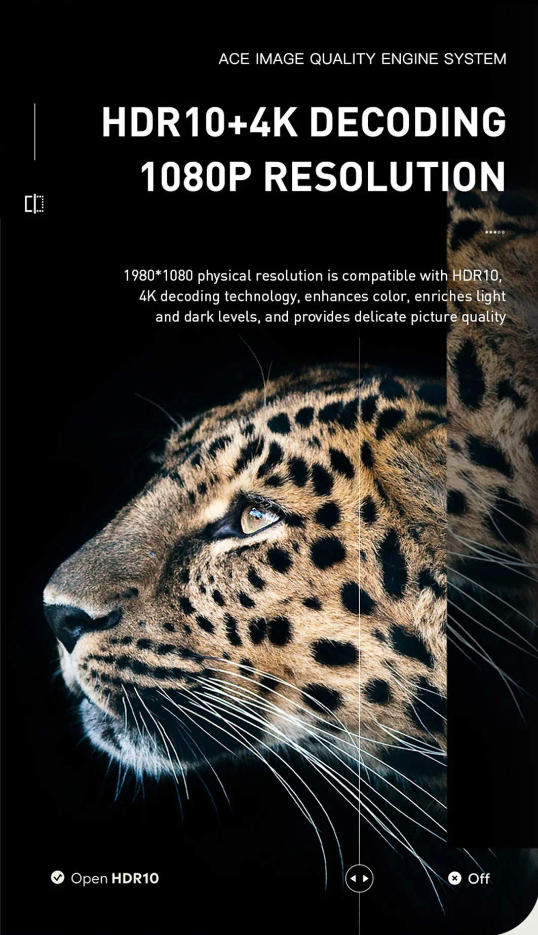 <Нет вреда для глаз>: Native resolution1920x1080P с технологией ЖК-дисплея, которая производит изображения с высоким разрешением, обеспечивая лучший опыт видео. Смотрите фильмы или Играйте в игры с захватывающим опытом. Технология диффузного отражения обеспечивает мягкое изображение для защиты глаз.