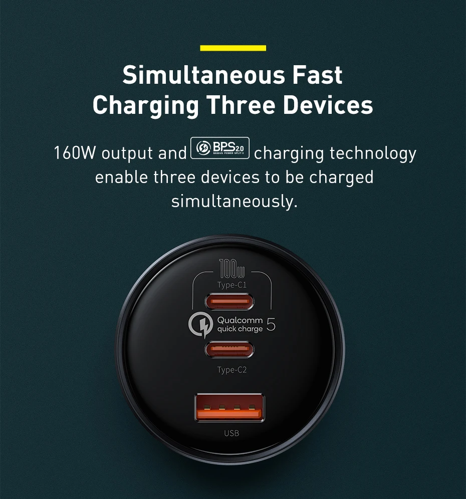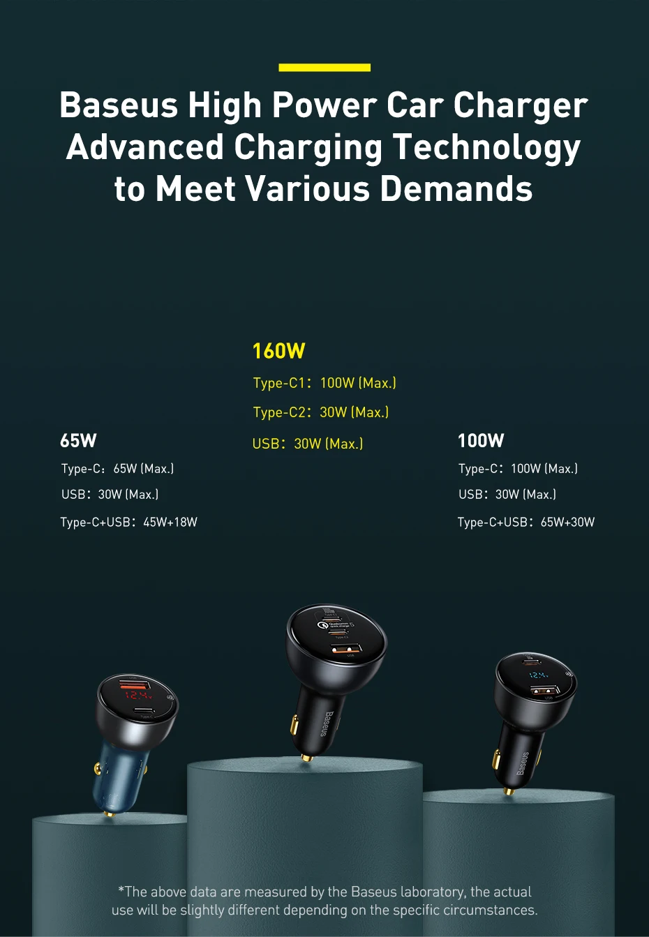 Название: Baseus Qualcomm Quick Charge 5 технология мульти-порт быстрая зарядка автомобильное зарядное устройство C + U 160W