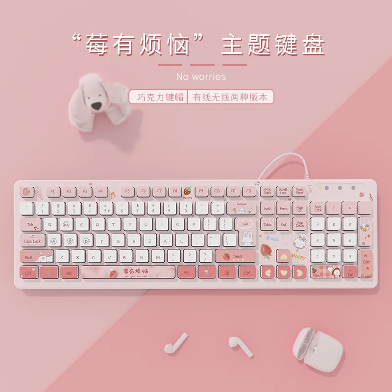 Отзывы о Kawaii Wired Keyboards Pink Wireless Keyboard Gaming Accessories Cartoon Cute Chocolate Mute Notebook Desktop Computer - купить по