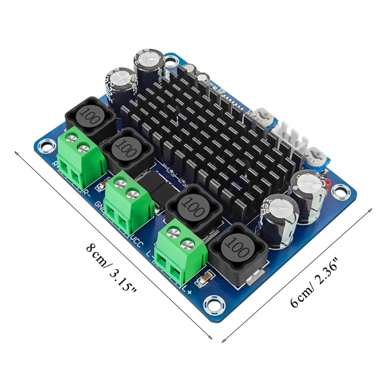 Плата усилителя мощности изготовлена из высокопроизводительного оригинального чипа TDA3116D2, 2-канальный стереоусилитель, 2x100 Вт Выходная мощность.