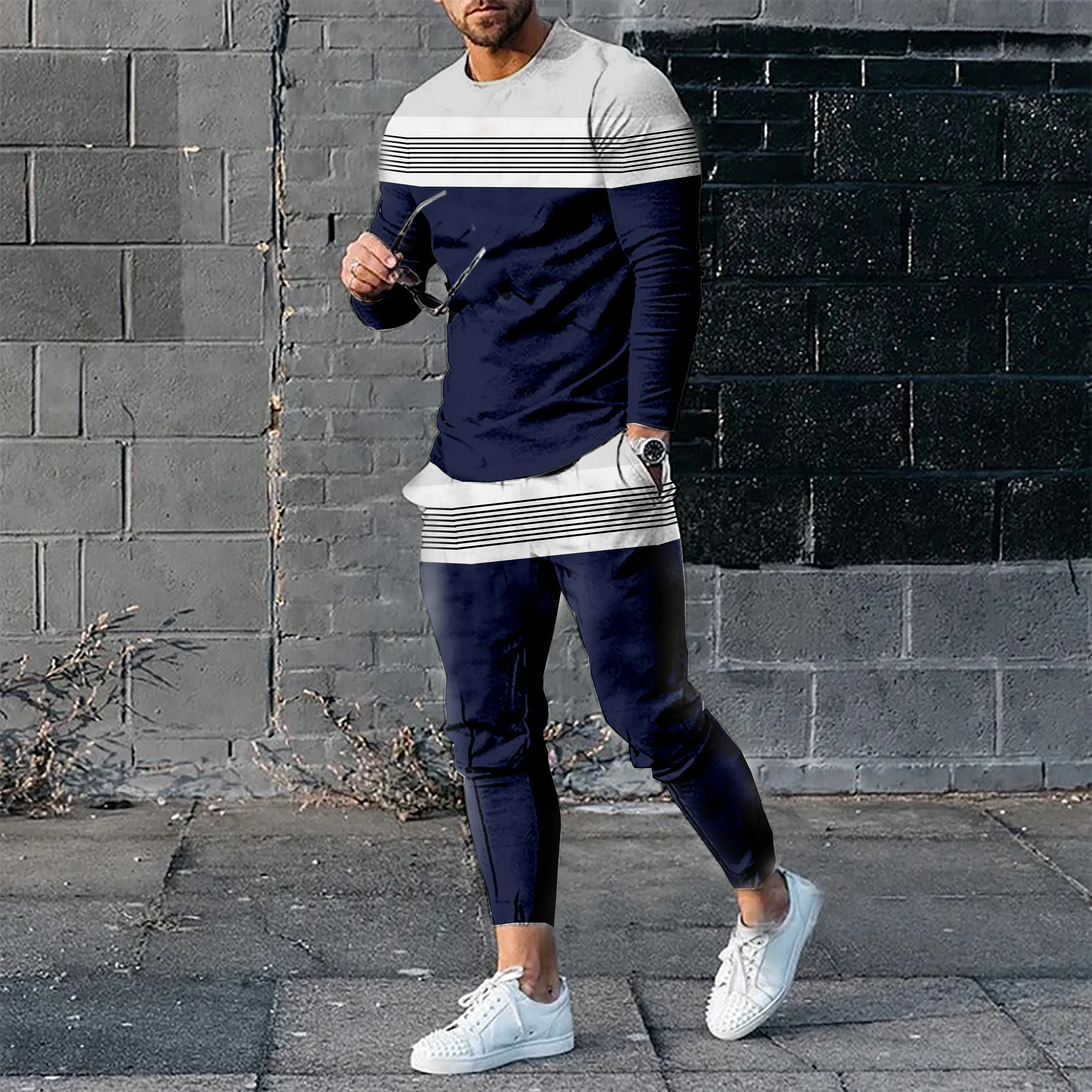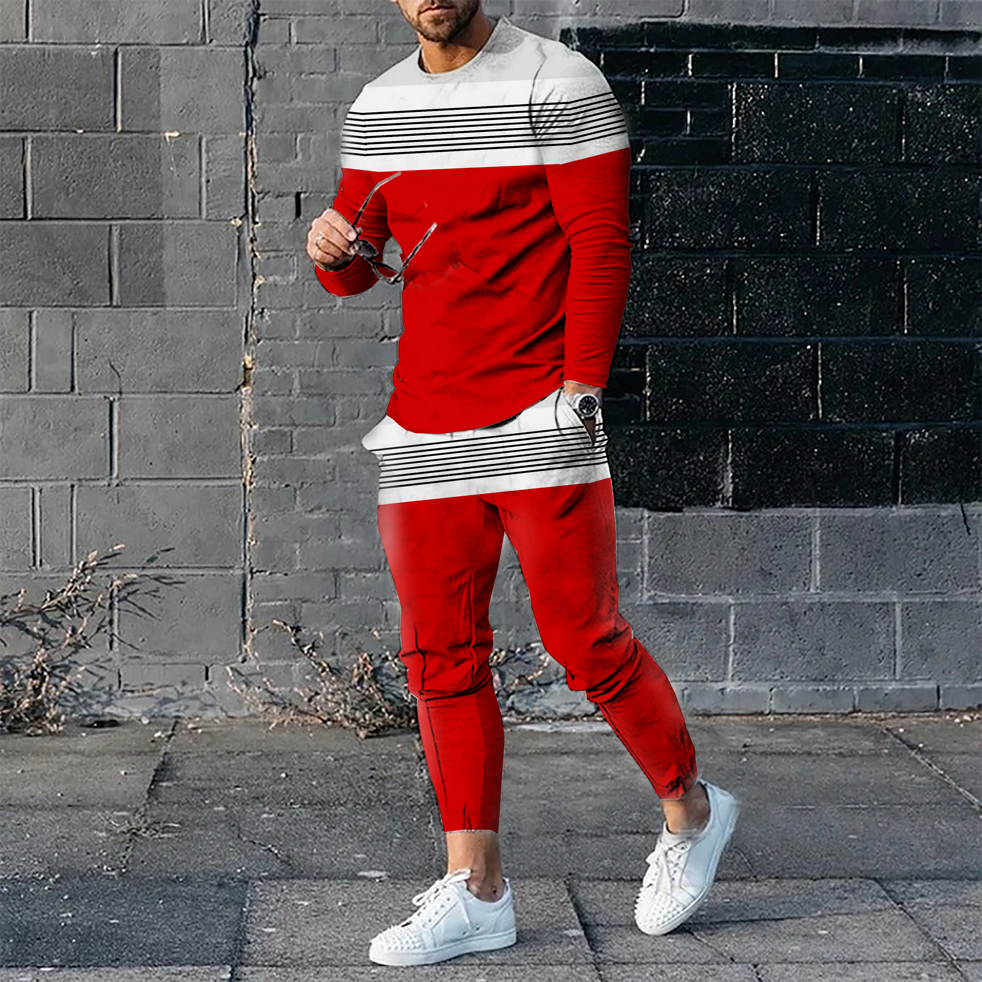 Отзывы о Костюм мужской для бега Лоскутная футболка с длинным рукавом и 3D-принтом брюки