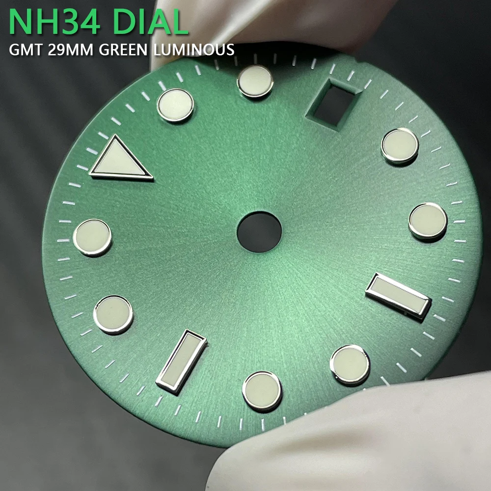 Модификация NH34 GMT часы циферблат 29 мм Sungray зеленый автоматический механический механизм Циферблат части C3 зеленый световой мод части NH34A