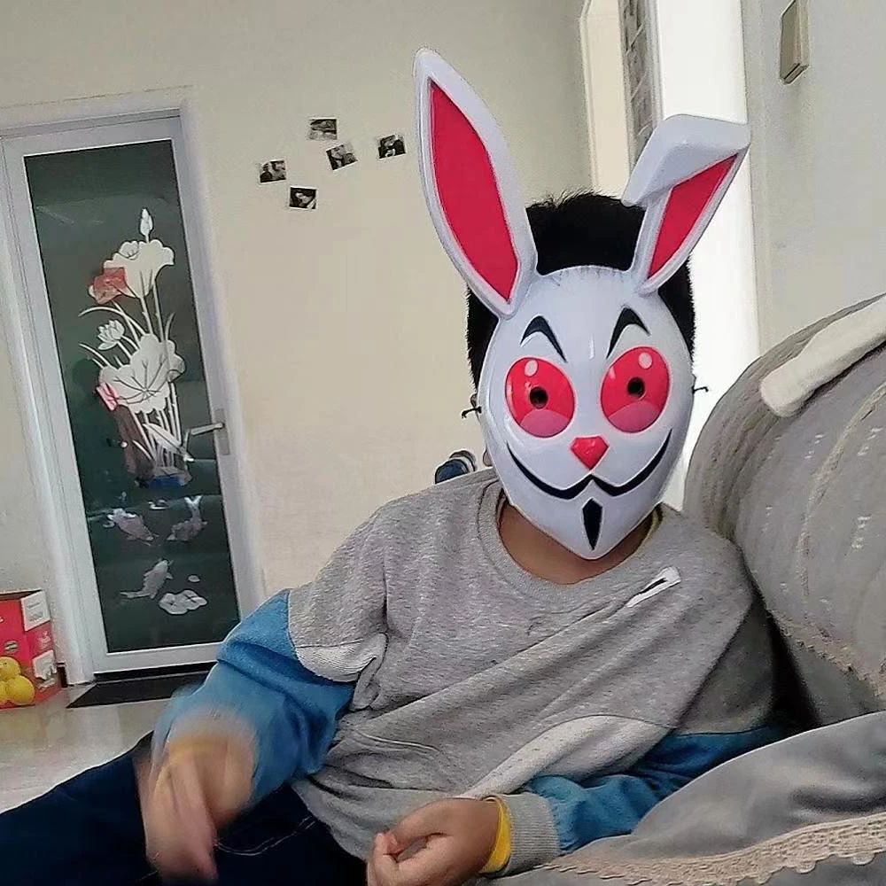 Игривая и милая маска кролика, она имеет два уха, Один вертикальный, а другой сложен, форма очень милая и очаровательная, они изготовлены из высококачественного ПВХ материала блистерного формования, прочные и могут быть устойчивы к падению. Толщина и вес умеренные, около 1,61 унций, долгое время носить не будет иметь тусклые ощущения, подходит для детей и взрослых показывают вечерние, ролевые игры, игры и т. Д.