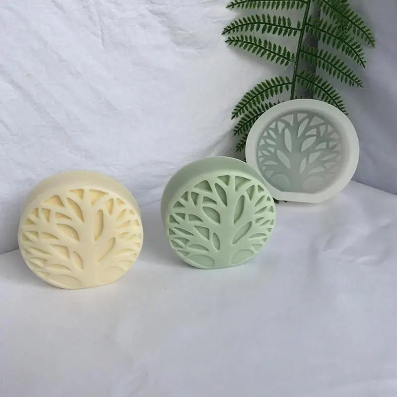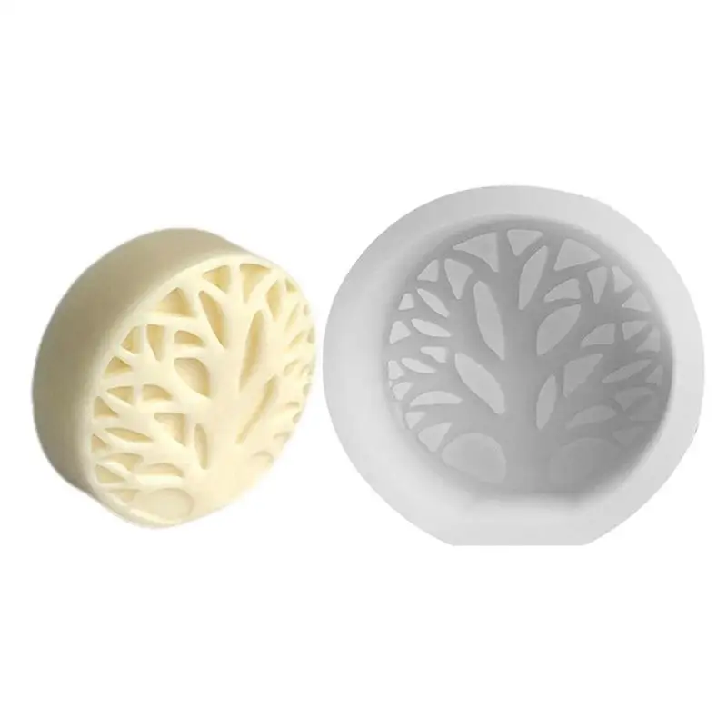 3. [легко для пользователей] натуральное мыло с изображением дерева заливают ваши любимые начинки и сохраняют их до полного формирования, протирайте отверстие большой иглой и пропустите фитиль воска через дно формы, легко отстегнуть форму после формования, вы можете непосредственно открыть форму.