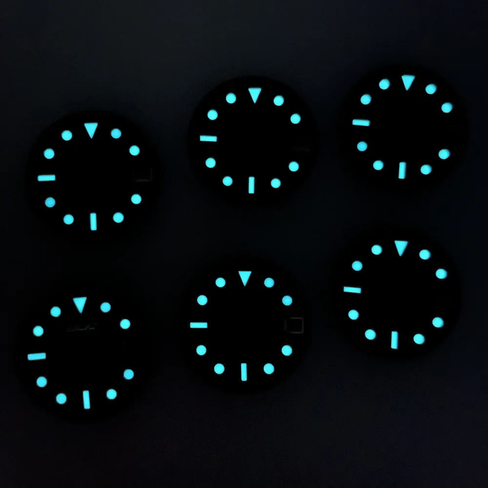 Wit 28,5 мм Wijzerplaat NH35 Wijzerplaat Полный Синий зеленое свечение Lichtgevende Wijzerplaat voor een SKX007 NH35 NH35A Automatische Beweging ontmoette S логотип wijzerplaat