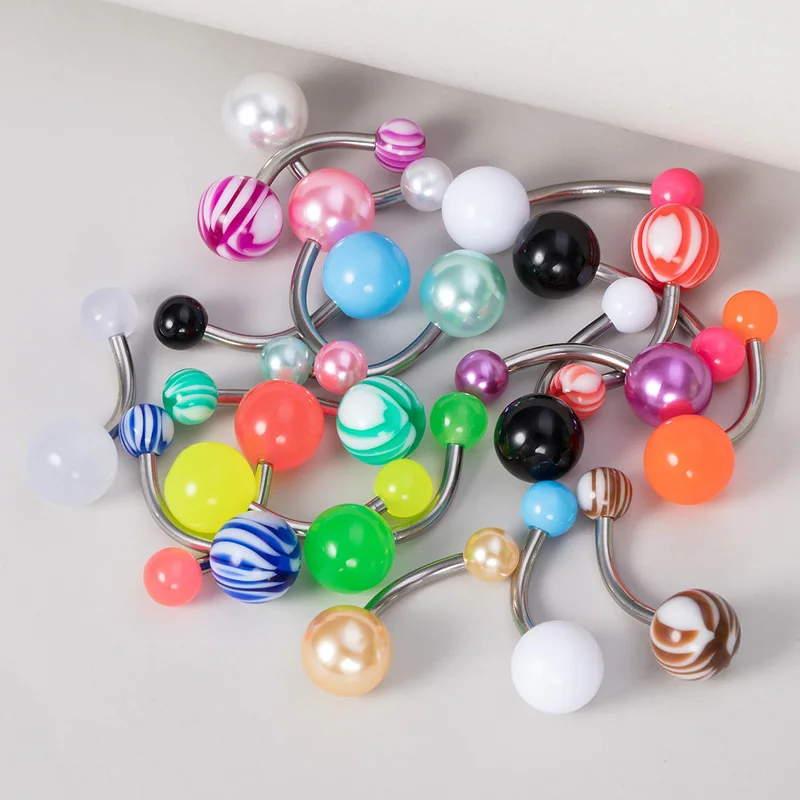 Отзывы о 5шт цветной акриловый шар пупка кольцо перфорация набор из нержавеющей стали