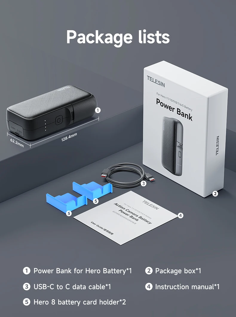 Название продукта: Мощность банка для спортивной камеры Hero 11/10/9/8/7/6/5 Батарея