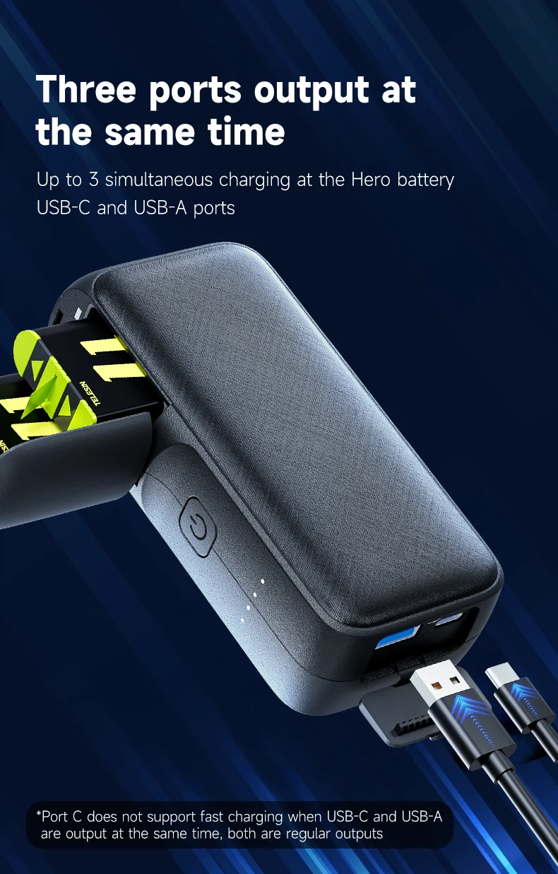 4. Три порта выводятся одновременно. Одновременная зарядка до 3 в USB-C аккумулятора Hero и USB-A-портах.