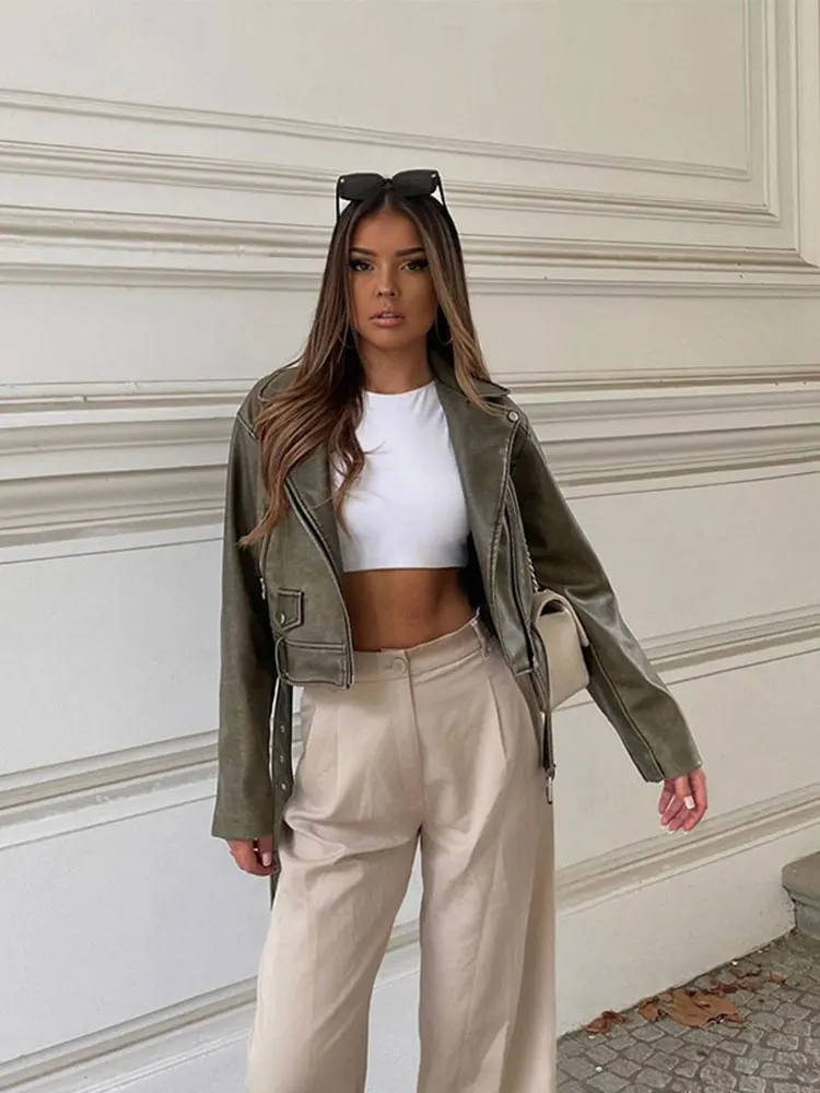 Отзывы о Женская кожаная куртка с отложным воротником однотонная укороченная из