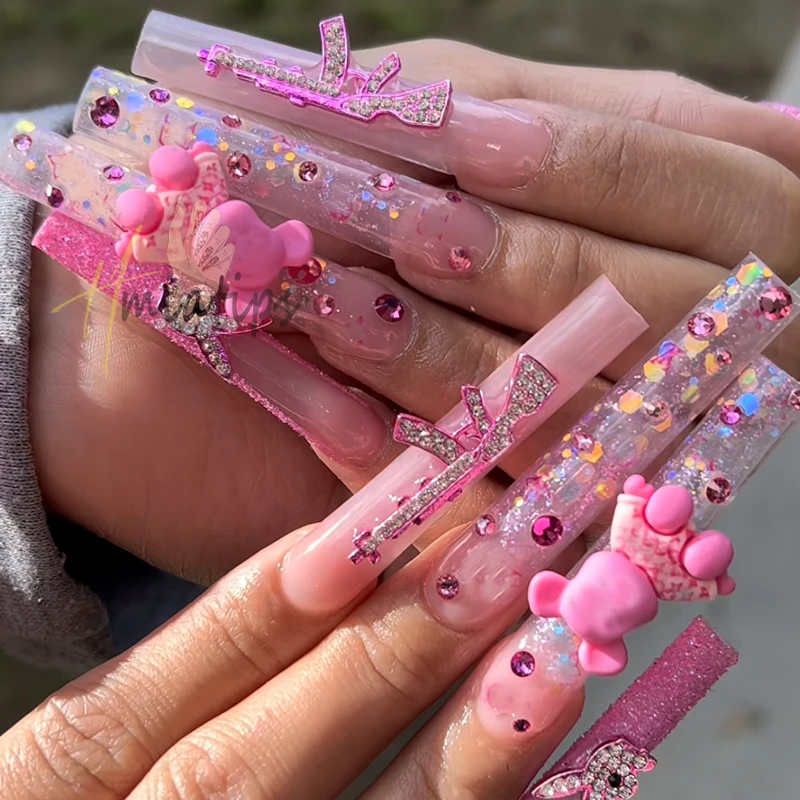 Отзывы о Роскошные подвески для ногтей в виде розового пистолета милый кролик блестящие