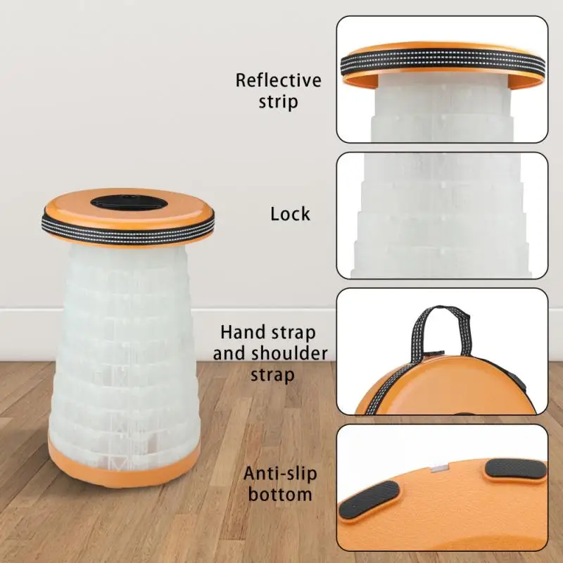 【Широкий диапазон применения 】выдвижной табурет с светодиодный светильник идеально подходит для использования в помещении и на открытом воздухе. Домашние мероприятия, такие как гостиная, спальня, ванная комната, кухня, офис; Мероприятия на свежем воздухе, такие как кемпинг, рыбалка, охота, туризм, барбекю, пикник, Организация очереди, садоводство и т. д.
