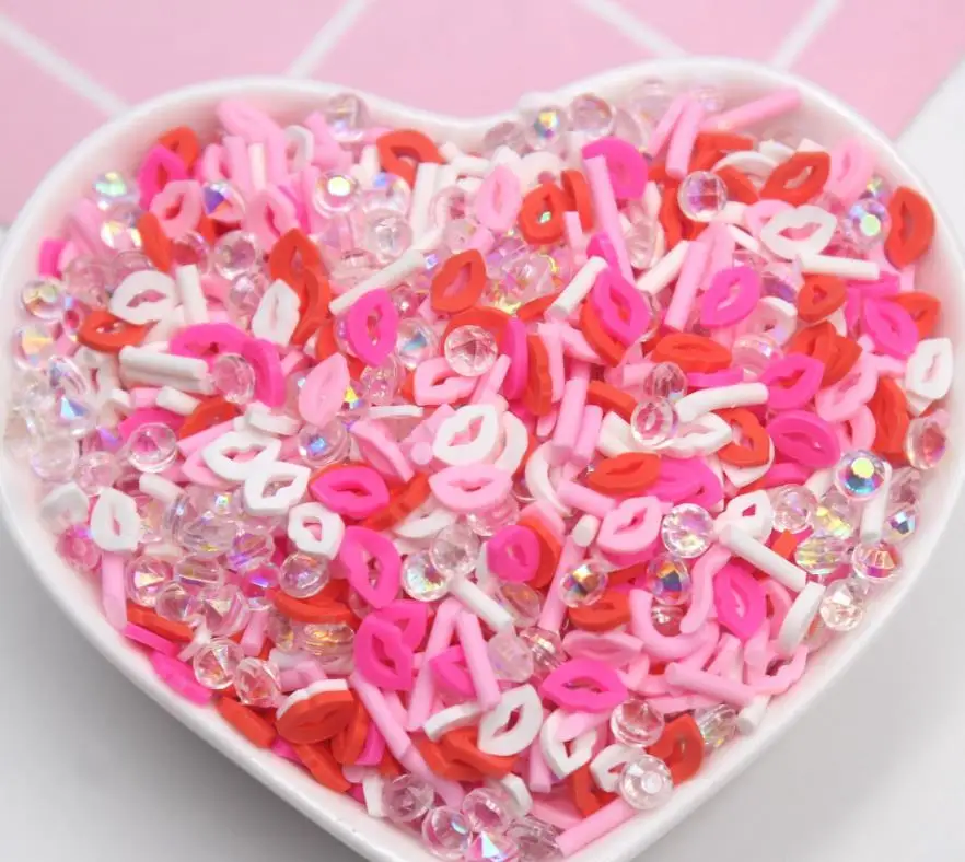 10 г/упаковка красные розовые губы полимерные глины для поделок своими руками пластиковые клеи частицы грязи на День святого Валентина Аксессуары для дизайна ногтей ручной работы
