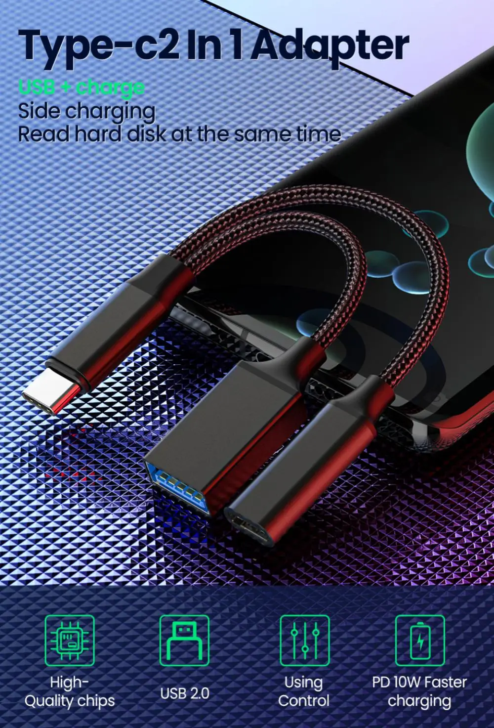 USB C OTG кабель адаптер для телефона 2 в 1 Тип C к USB адаптер с PD порт зарядки для Samsung Huawei Xiaomi телефон ноутбук планшетОписание: