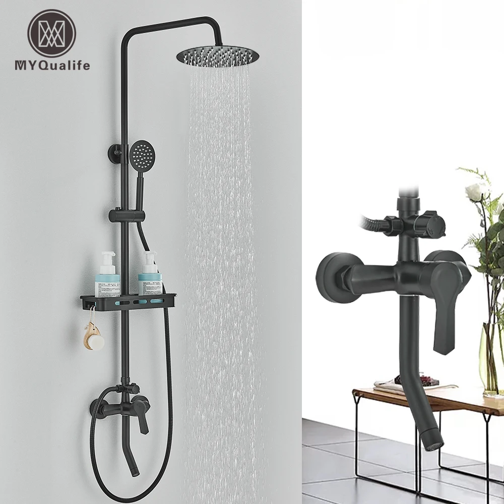Отзывы о Набор смесителей для душа из нержавеющей стали матовый черный кран с полкой