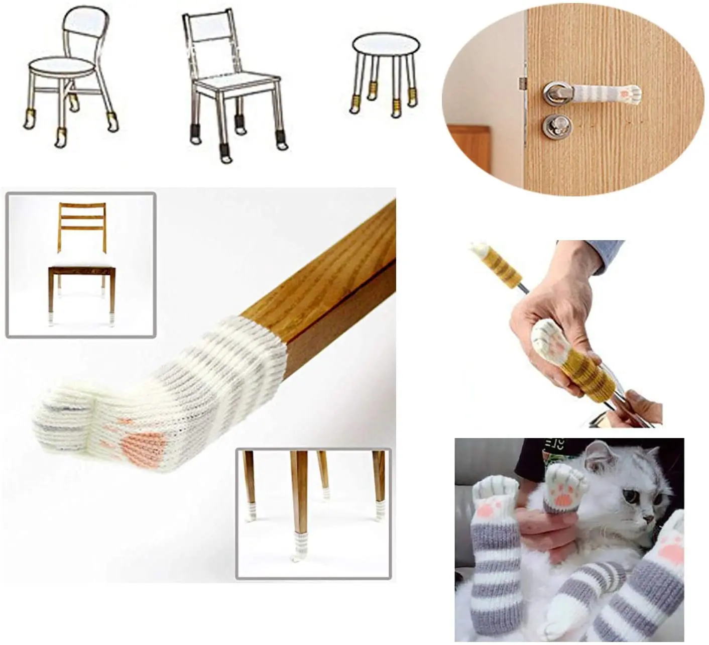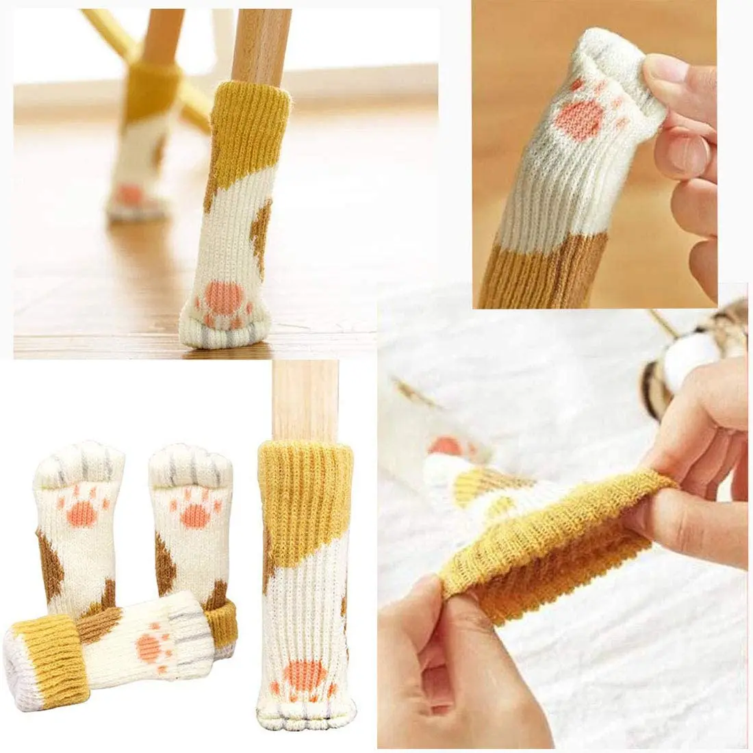 Отзывы о 8Pcs Cute Cat Paw Furniture Socks Knitted Chair Leg Covers Floor Protectors Non Slip Table Booties Pads Fit Square Round Feet - купить по