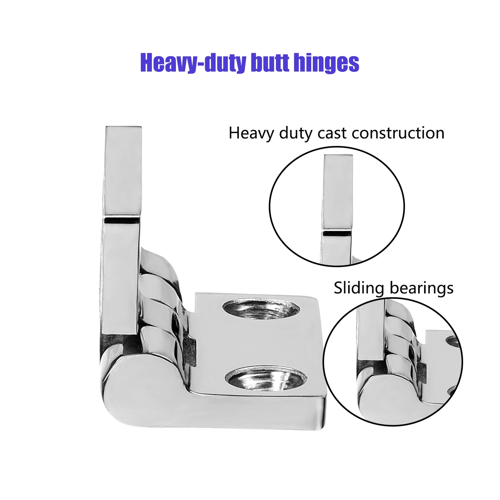 Почему мы выбираем Материал 316? Нержавеющая сталь 316 обеспечивает отличную коррозионную стойкость и имеет полированную поверхность. Прочный и красивый. Большой сустав и прочный штифт увеличивают прочность и обеспечивают плавную работу. Эти шарниры работают с сползая подшипниками, которые раскрывают и закрывают ровно без шума.