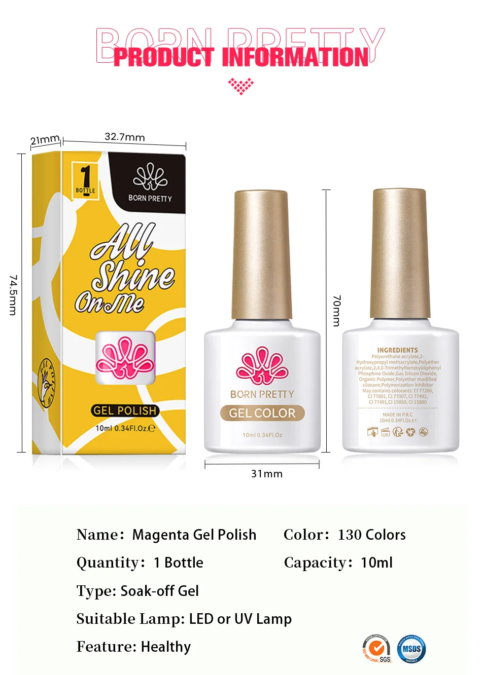 Отзывы о Гель-лак BORN PRETTY для ногтей 1 шт. 10 мл модный пурпурный цветной отмачиваемый