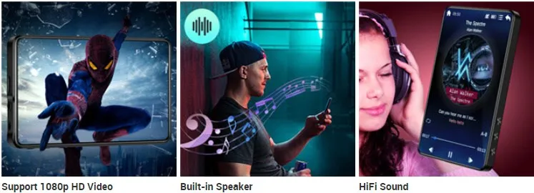 【 16 ГБ и до 128 ГБ 】 Встроенная память 16 ГБ и поддержка до 128 Гб (не входит в комплект). Вы можете скачать тысячи песен и хранить много файлов, поддерживает музыкальный формат, такой как MP3 WMA APE FLAC WAV AAC-LC ACELP и так далее.