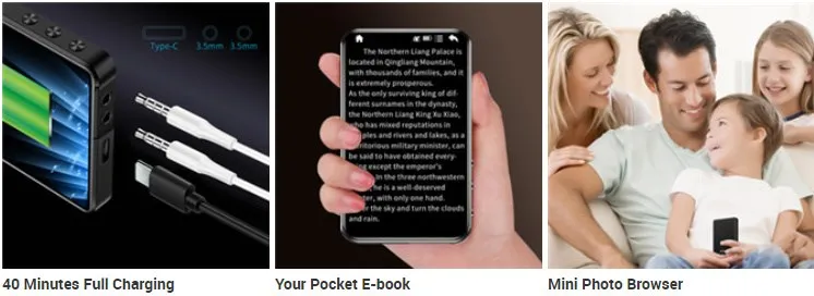 【 Многофункциональность 】поддержка воспроизведения музыки, воспроизведения видео, записи, электронного словаря, TeXT документ TXT чтение, просмотр изображений, fm-радио, функция папок, tf-карта и функция настройки.