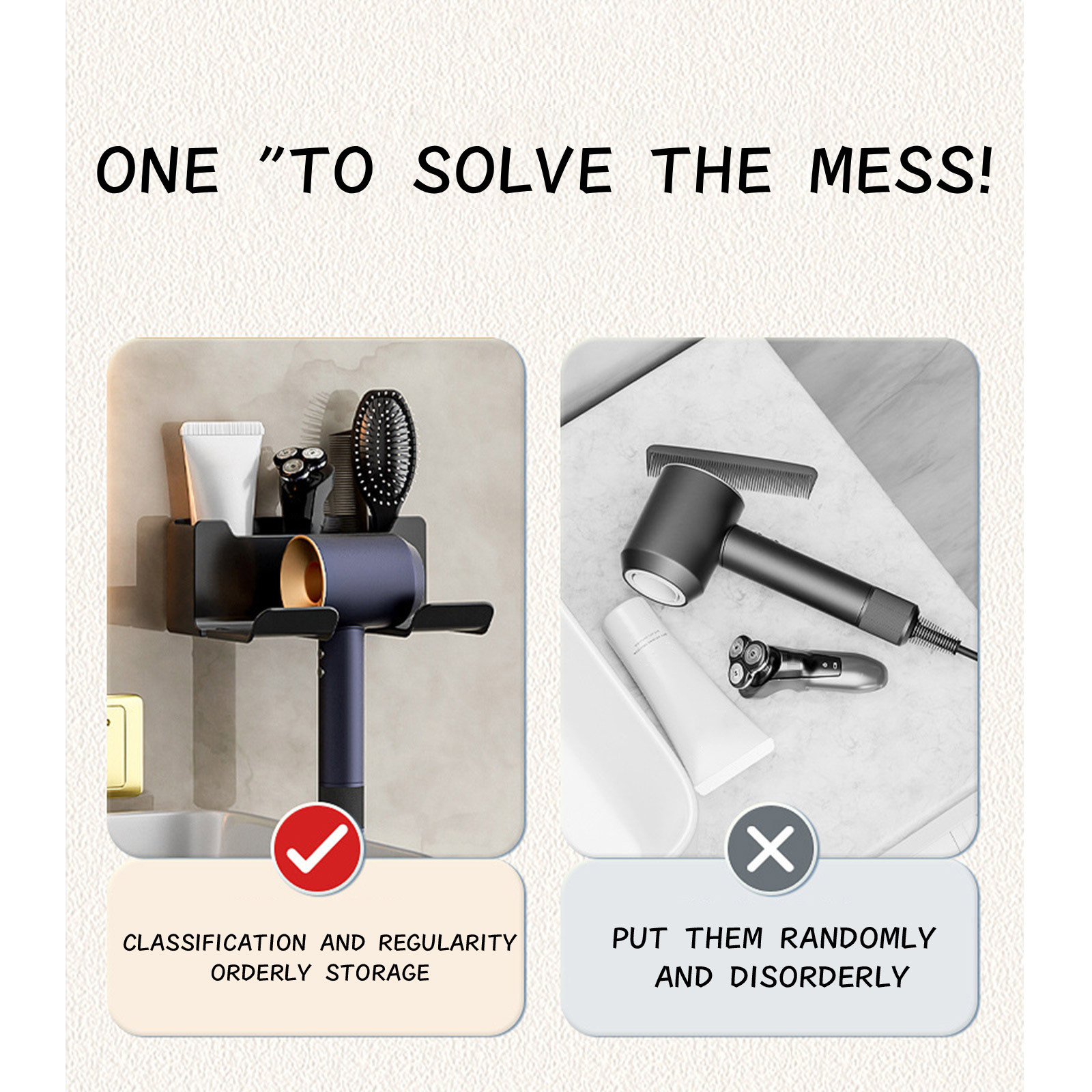 Можно хранить и организовывать фен, очищающее средство для лица, шампунь, бритвы, расчески и т. Д.