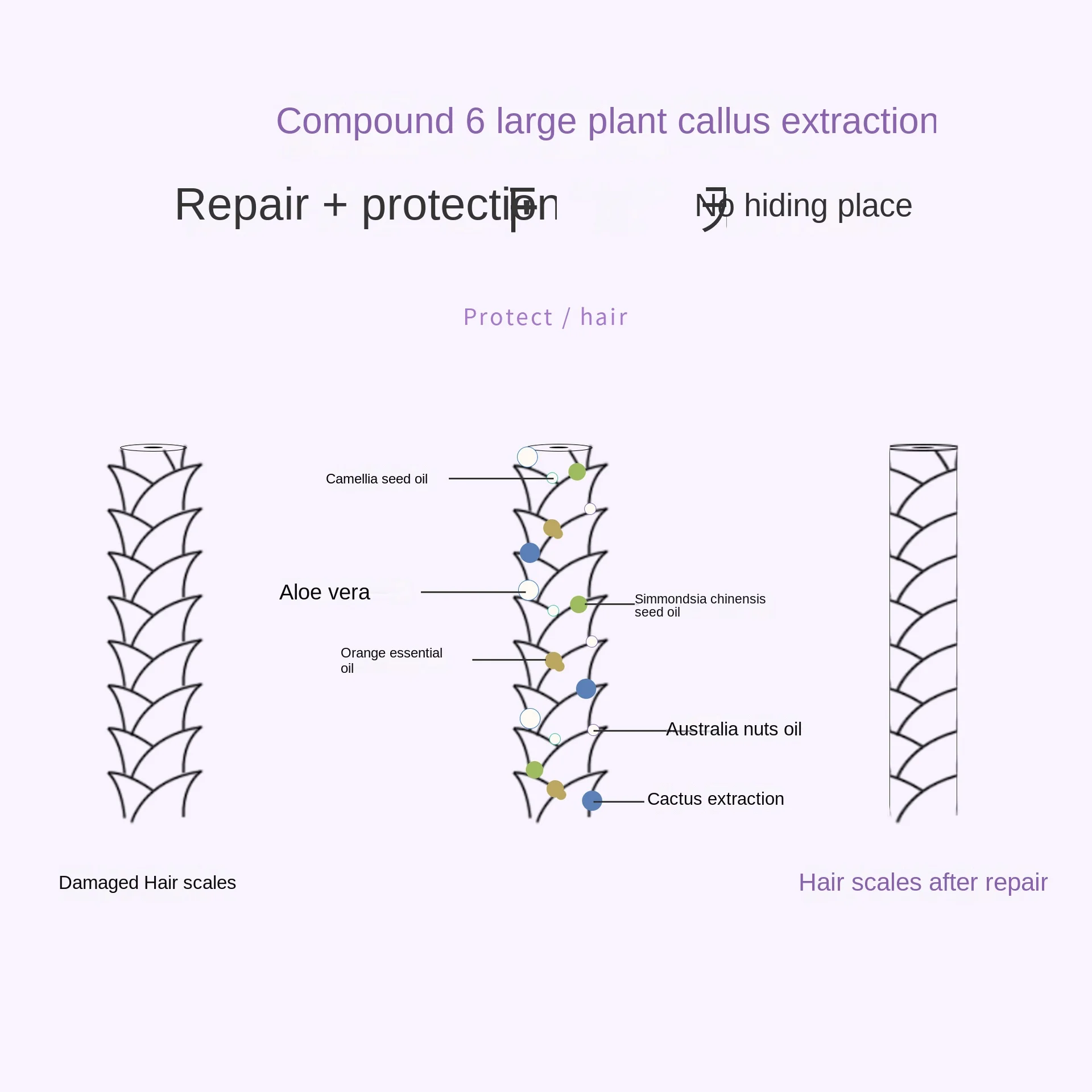 Растительные масла слегка оберните волосы, образуя пленку на поверхности волос, легко открывайте и переплетайте волосы, улучшая гладкость волос