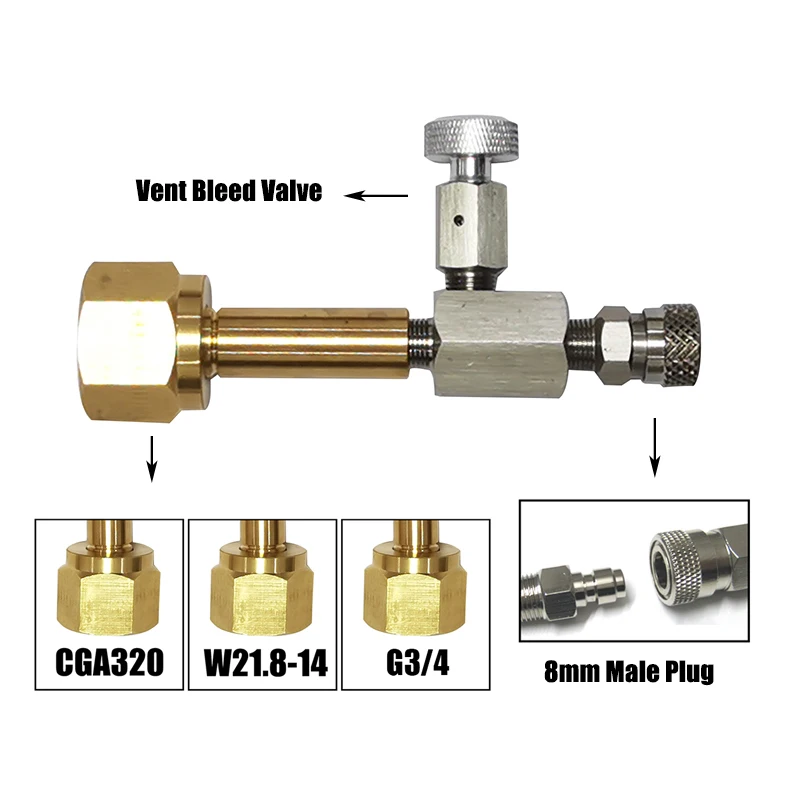СО2 разъем клапана бака резьба w21.8-14 (din477) или G3/4 или CGA320 может использоваться.