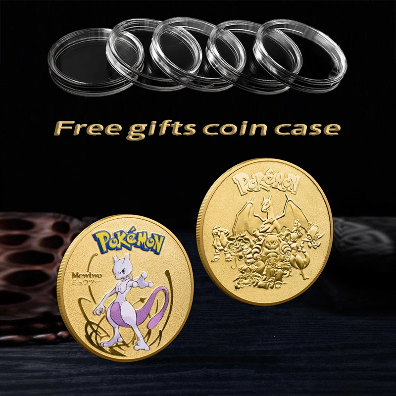 Золотой Покемон монеты металлический набор Коллекция Mewtwo Charizard Пикачу аниме-открытки Покемон алый и фиолетовый памятные монеты подарки