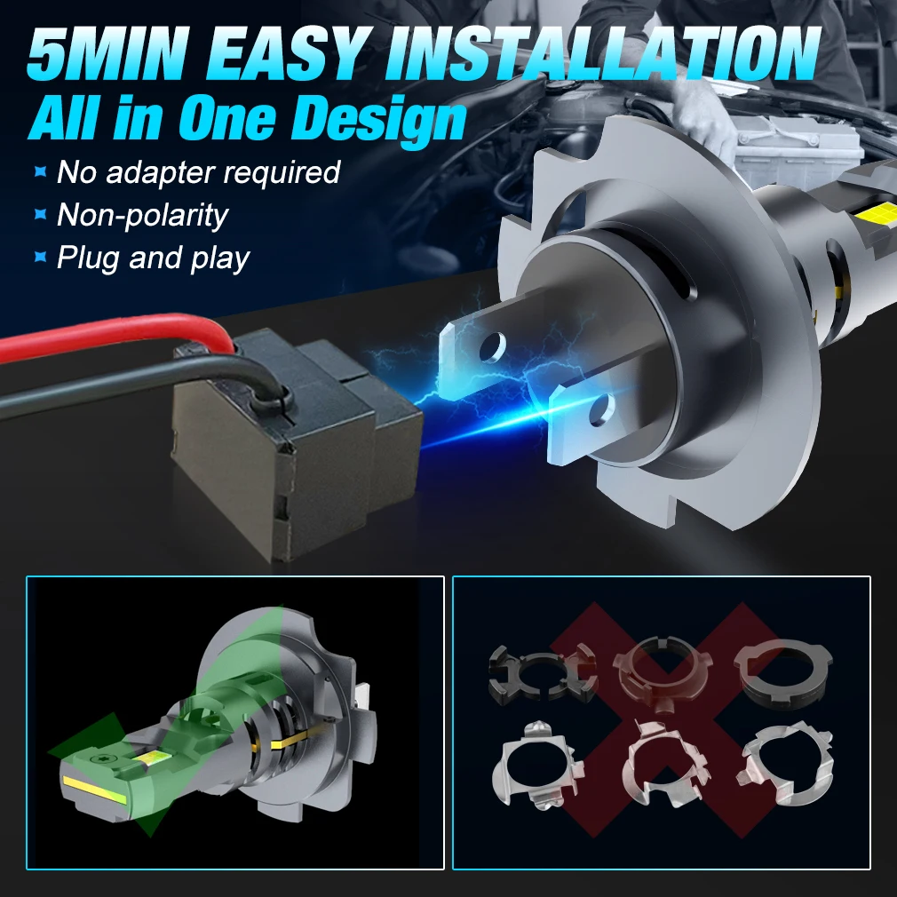 H1 H7 светодиодный 1:1 Размеры автомобильные лампы для передних фар мини турбо головная лампа 3570 светодиоды с чипом CSP Беспроводной H4 светодиодный авто лампы 6500 к белый свет 12 В