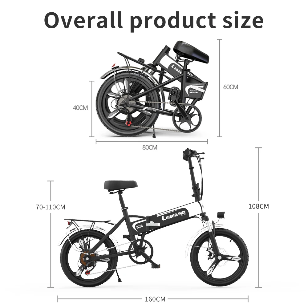 Расширенный размер: длина 1600 * ширина 500 * Высота 1100 ммРазмер складывания: длина 920 * ширина 800 * высота 800 ммФактический Вес: около 26 кгРежим: чистый электрический, Электрический вспомогательный, ПедальныйМатериал оправы: алюминийПередняя вилка: гидравлическая передняя вилкаТормозная система: передние и задние механические дисковые тормозаСистема передачи: задний приводРазмер шин: 20*1,75Подходящая высота: 145-190 смМаксимальная скорость ≤ 30 км/чВес нагрузки ≤ 150 кгМотор параметры: 48v 500WТип двигателя: Бесщеточный высокоскоростной двигатель постоянного токаНоминальное напряжение 48 ВОсновные технические параметры зарядкиВыходная мощность 2AВремя зарядки 4-6 чПараметры литиевой батареиТип батареи: 18650 литиевая батареяЕмкость 10ач, 12.6ач