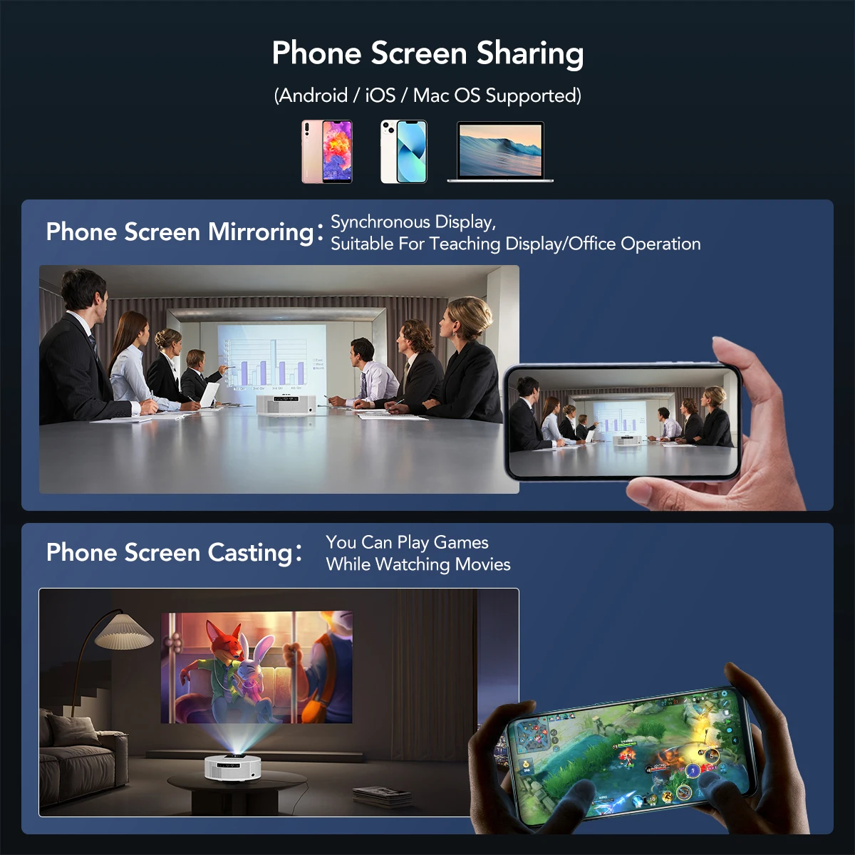 【 1 】 зеркальное отображение экрана телефона: синхронный дисплей, подходит для обучения дисплея/работы в офисе