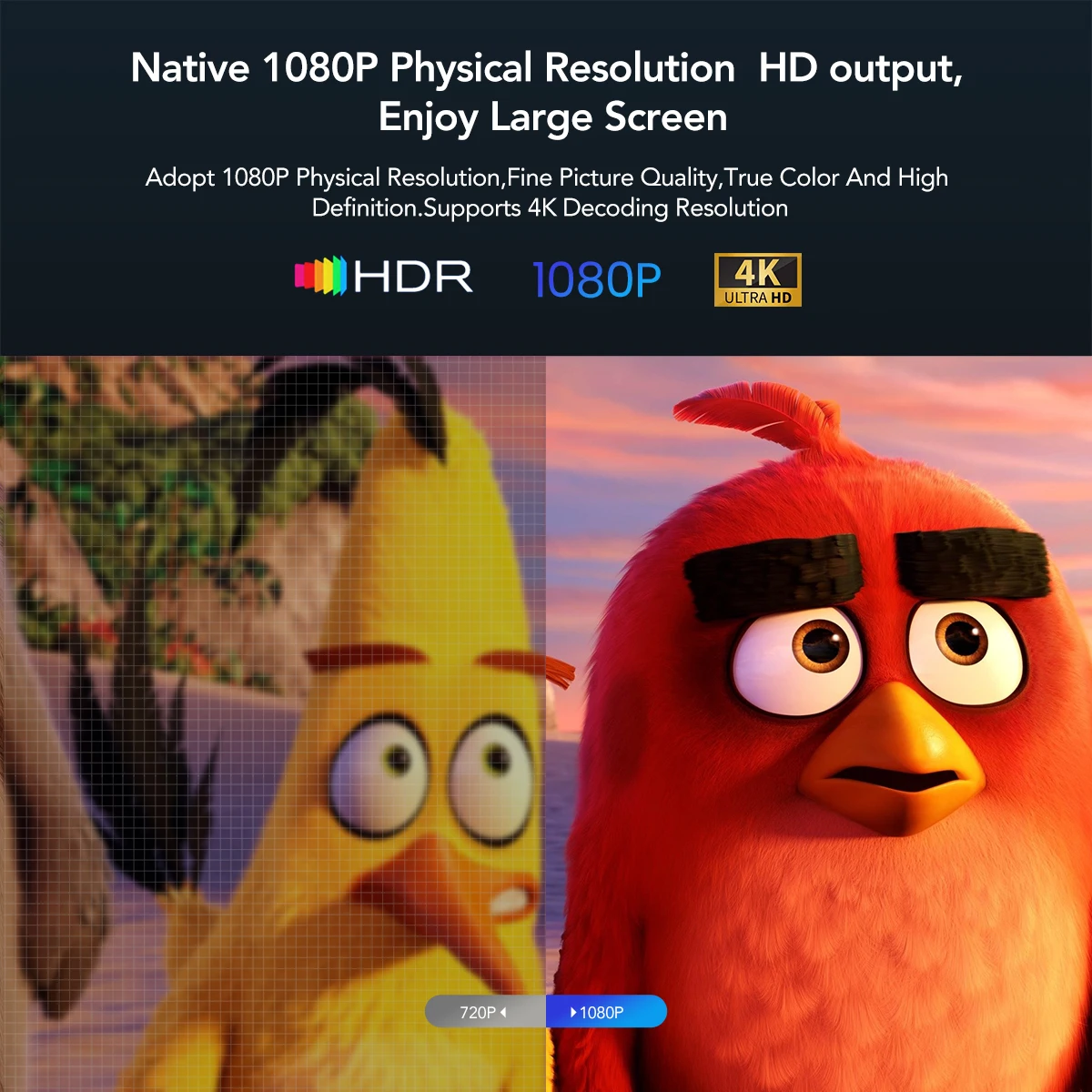【Native 1080P с физическим разрешением HD выход, наслаждайтесь большим экраном 】