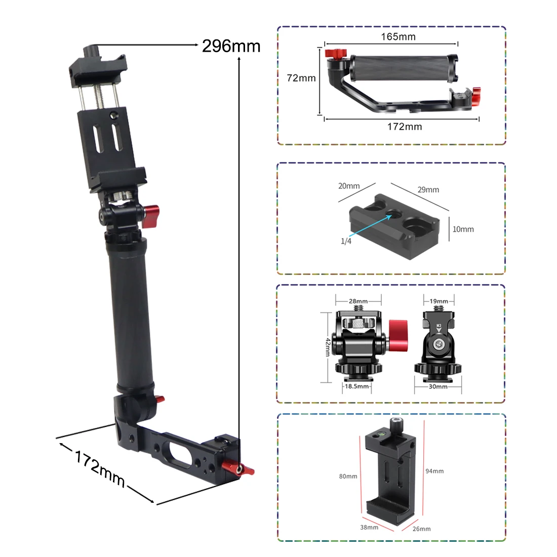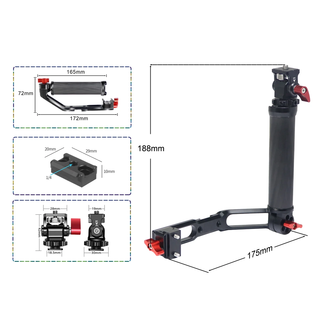 Разработан с 1/4 дюймовым интерфейсом и холодной обувью, для монитора, микрофона и светодиодный светильник быстрого крепления.
