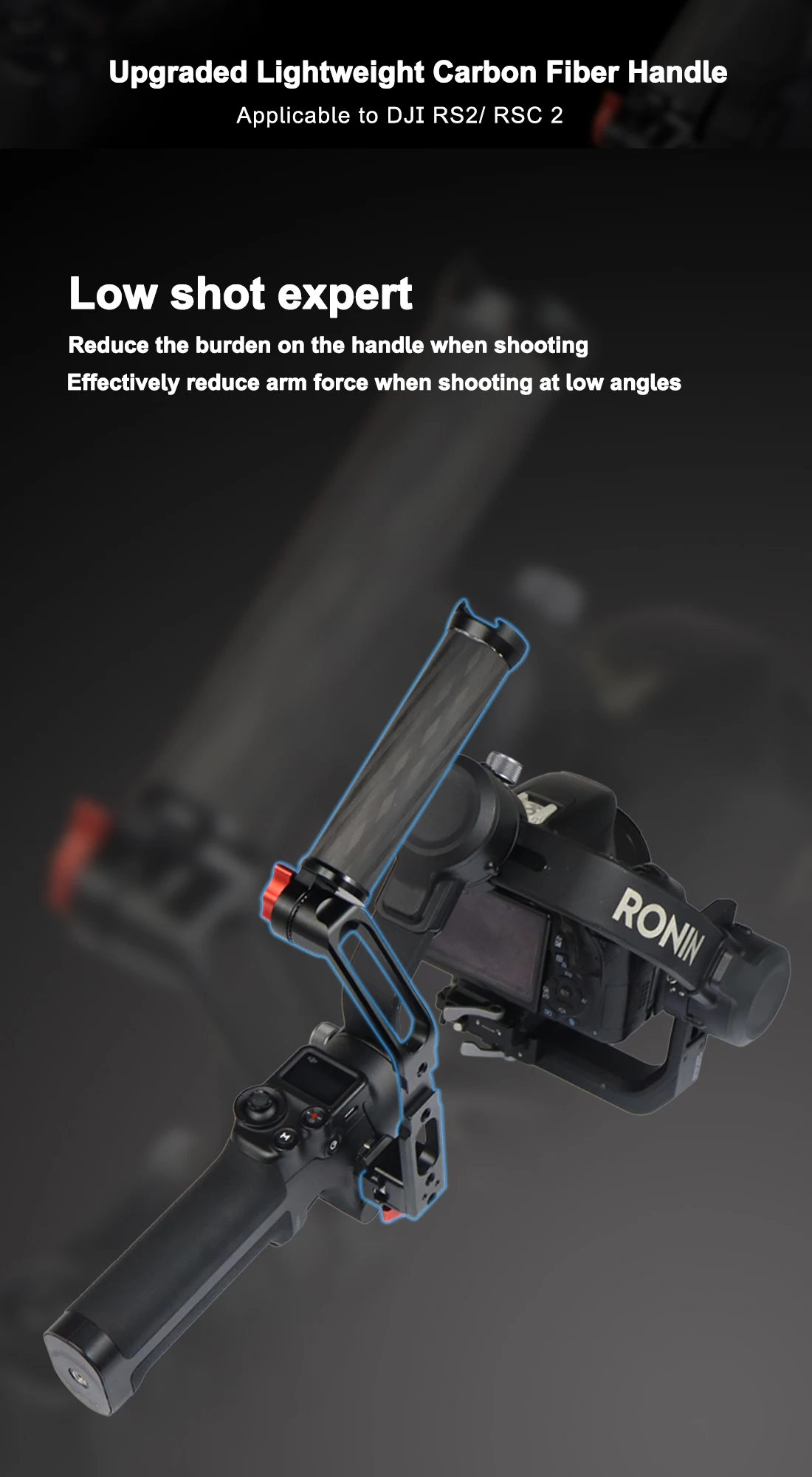 Рукоятка нового дизайна совместима с стабилизатором DJI Ronin S 2 и Ronin SC 2, что делает карданный шарнир портативным и обрабатываемым.