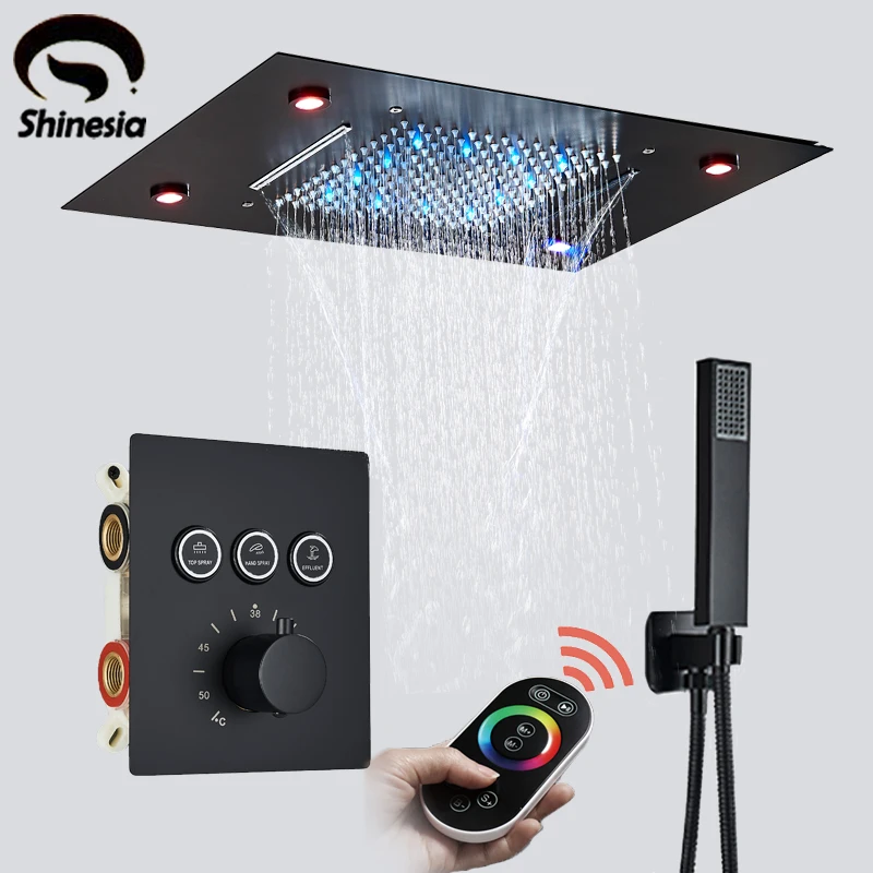 Shinesia черный термостат скрытый набор для душа со светодиодной скрытой душевой системой водопад встроенный душевой кран пульт дистанционного управления