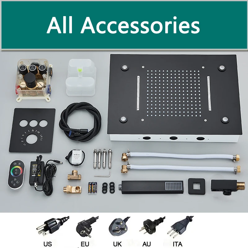 Отзывы о Скрытая дождевая Душевая система Shinesia с черным термостатом светодиодная водопад