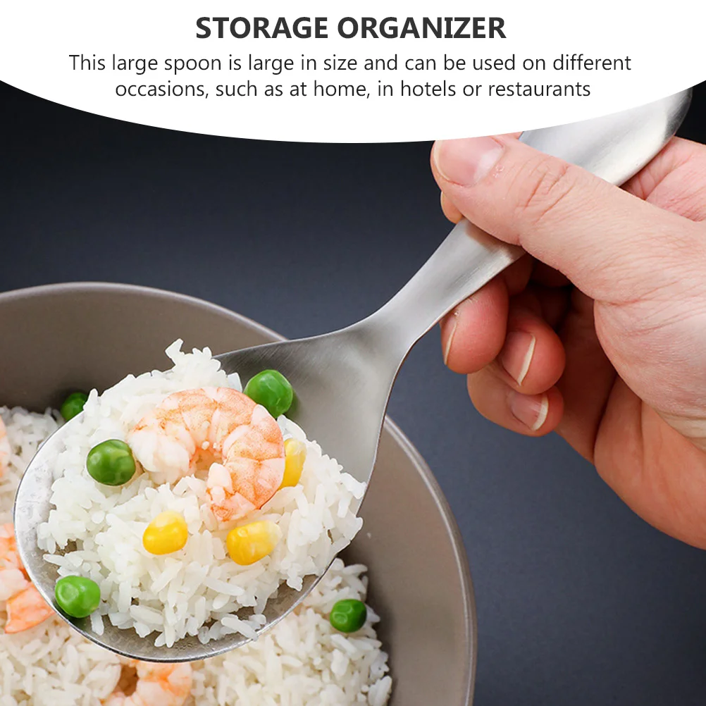 ОписаниеЛожка для риса из нержавеющей стали, шпатель для риса, металлический совок для риса, кухонная утварь, Серебряный инструмент