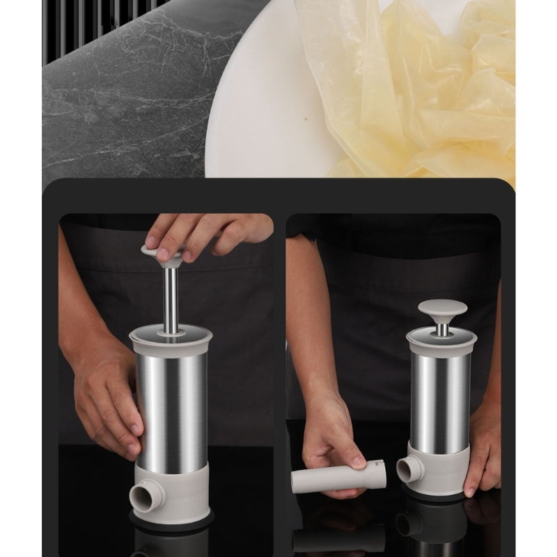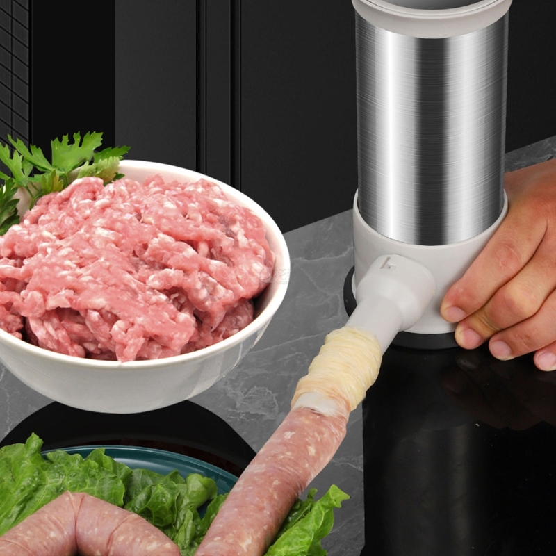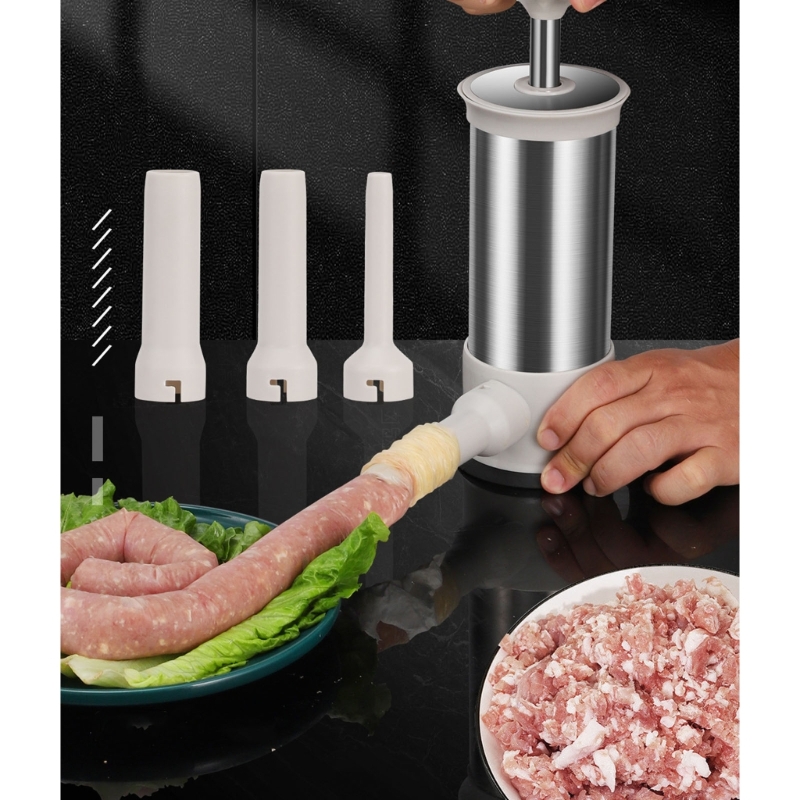Бытовой колбасный шприц: Этот колбасный шприц может держать до многих-мясо за раз, что делает процесс наполнения намного проще. Большое отверстие трубки также позволяет легко вставлять мясо.
